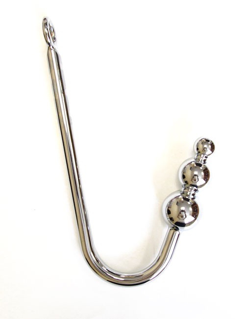 На одном конце крюк имеет осо­бый рельеф, кото­рый состоит из 3 шари­ков раз­ного диаметра; а с дру­гой сто­роны имеет спе­ци­аль­ное кольцо, при помощи кото­рого Вы сможете под­веши­вать сво­его парт­нера к потолку, свя­зы­вать верев­кой, при­вя­зы­вать крюк к воло­сам ниж­него и т.д. При такой фик­сации, каж­дое непро­из­воль­ное движе­ние будет отзы­ваться чув­ствен­ной аналь­ной стиму­ляцией, что суще­ственно уси­лит его сла­дост­ные ощуще­ния!
