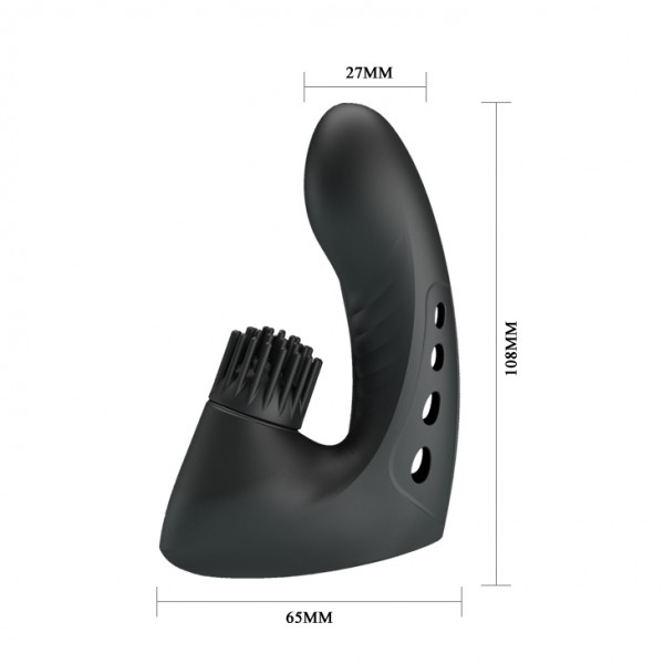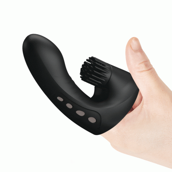 Потрясающий девайс для новых впечатлений, пробуждения G-точки и самых фееричных кульминаций - насадка на палец с вибрацией и клиторальным ротатором "щеточкой" от "Pretty Love"!